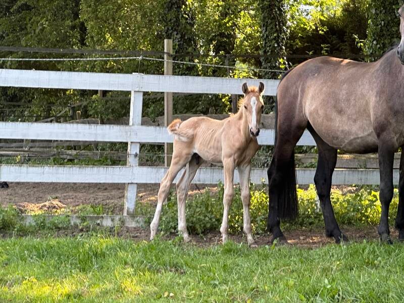 Uiteraard een Grap Sans Souci MC is bij ons geboren en toont nu al het kalme en nuchtere karakter dat zo kenmerkend is voor zijn familie. Hij is relaxed, onbevangen en niet snel onder de indruk — eigenschappen die hem straks tot een fijn sportpaard kunnen maken.