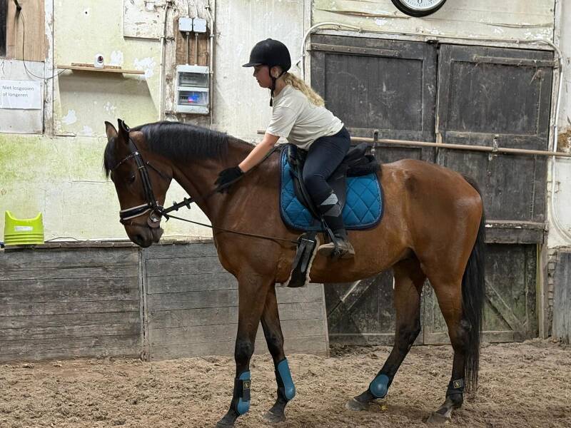 Hij is braaf onder het zadel, ook voor beginnende ruiters. Geen gekke fratsen, geen stress – gewoon een eerlijk paard dat je vertrouwen geeft.